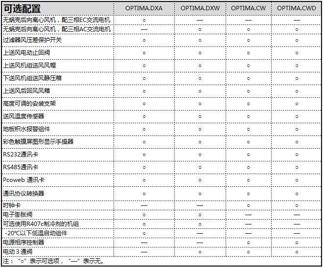 OPTIMA家族機(jī)房專用空調(diào)機(jī)組有多種制冷方式,包括直接蒸發(fā)風(fēng)冷式、直接蒸發(fā)水冷式、單盤管冷凍水式及雙盤管冷凍水式