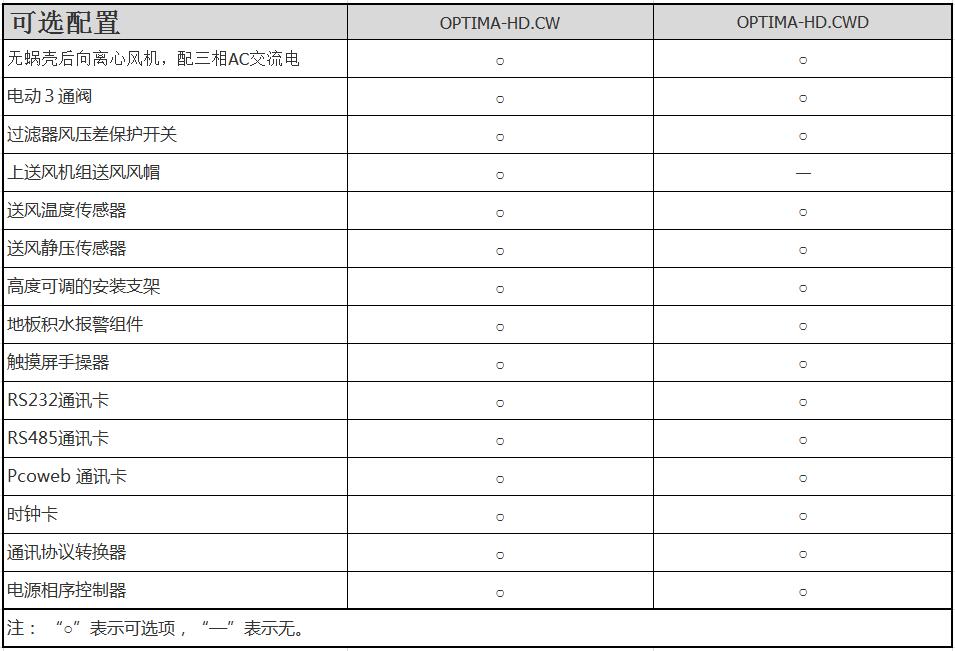 OPTIMA-HD冷凍水型機房專用空調(diào)機組包含系列如下: