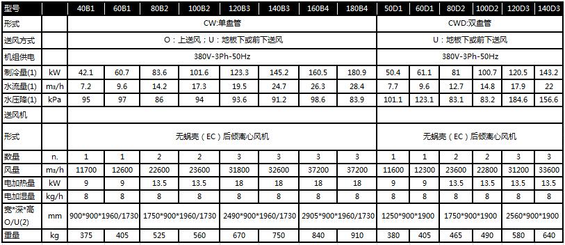 (1) 指回風(fēng)干球溫度24℃,相對濕度50%;進(jìn)/出水溫度:7℃/12℃;