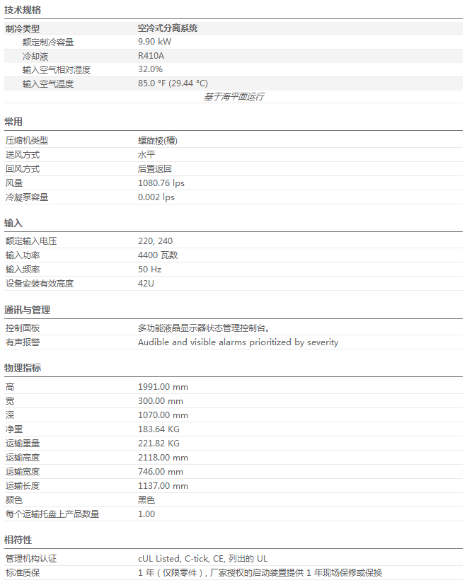 APC InRow風(fēng)冷系列ACRD101行間空調(diào) ACRD101 基本性能頭壓控制 調(diào)節(jié)制冷劑頭壓,防止線圈結(jié)冰??汕逑催^(guò)濾器 便于維護(hù)、可清洗的深度負(fù)載網(wǎng)狀過(guò)濾器,可從回氣流中清除顆粒。兼容的密封系統(tǒng) 該設(shè)備可與機(jī)架或熱通道密封系統(tǒng)組合,從而避免熱空氣混合并最大限度地提高制冷效率