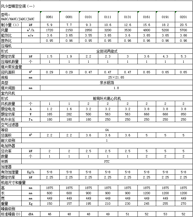 【海瑞弗風冷型精密空調】制冷量:5.9~102KW